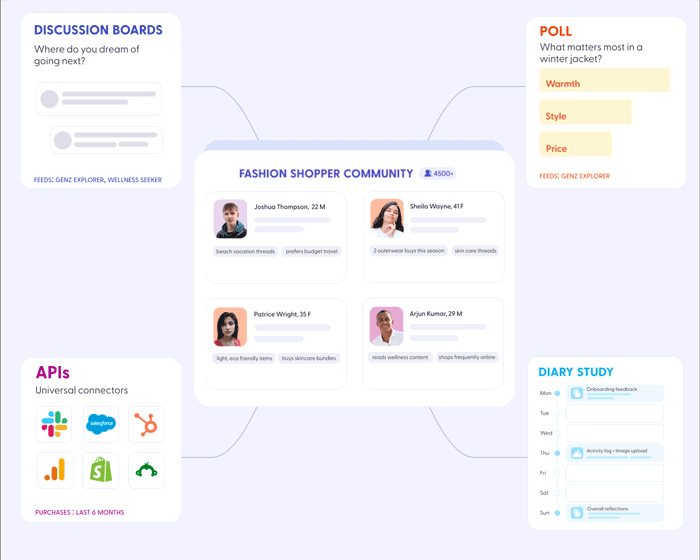 Capture not just what customers think today—but how their needs, behaviors, and attitudes evolve. Progressive profiling enriches every member record with each interaction, compounding insight value across your research ecosystem.