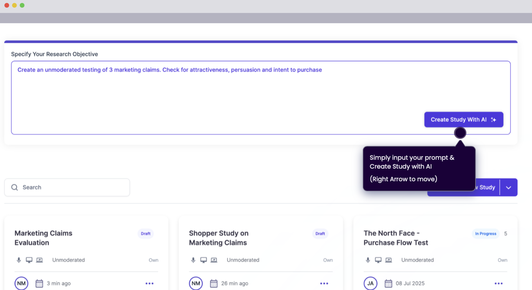 Simplify end-to-end video research. Run live or unmoderated sessions, analyze with AI, and deliver human-centered insights faster than ever.