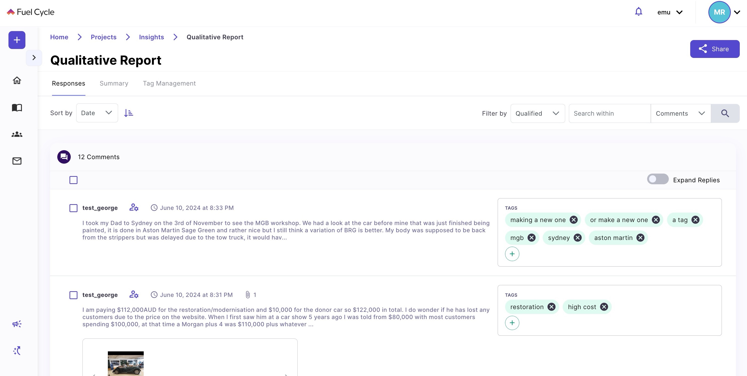 We are overjoyed to bring Qualitative Reports to the Research Engine for all users. This report is automatically included as an Insight report for all discussion boards and surveys where comments are enabled.