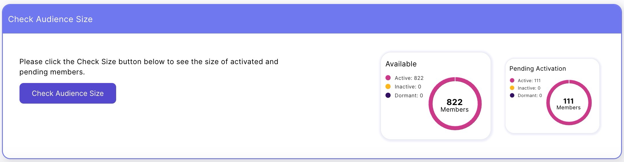 Two charts display a breakdown of active, inactive, and dormant status: one for available/activated members and the other for members who are pending activation.