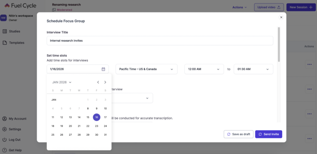 - In-Platform Scheduling — Schedule 1:1 or focus group sessions directly from Moderated Views, without switching tools.